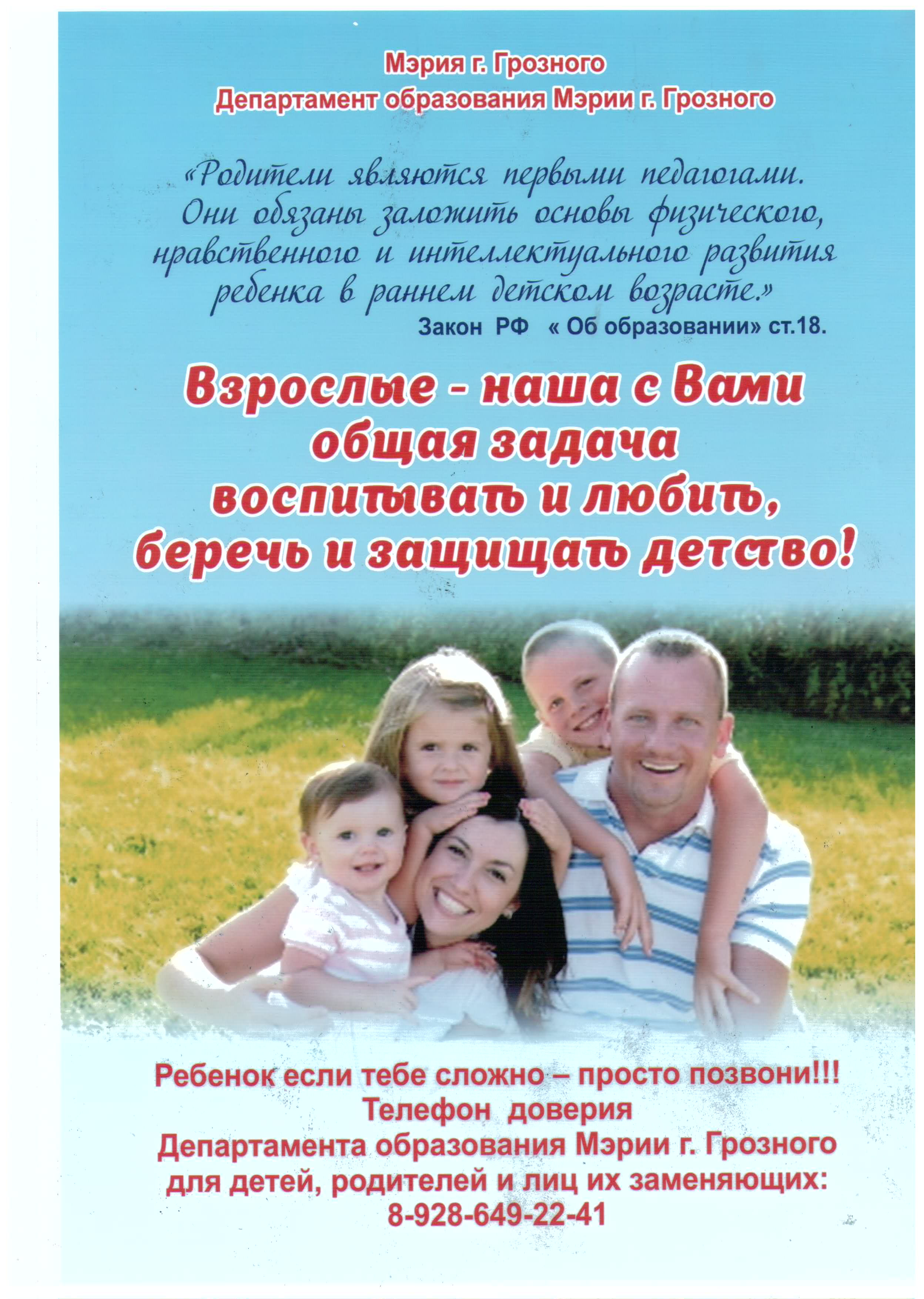 Телефон доверия для детей и родителей