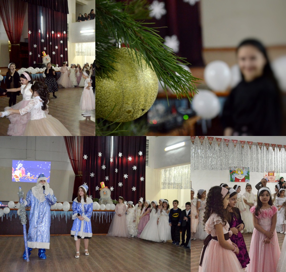 Самый любимый праздник, как взрослых, так и детей, конечно же, Новый год. Подготовка началась задолго до наступления праздников. Огромную работу провели по оформлению фойе, кабинетов и актового зала, за это можем сказать СПАСИБО, нашему чудесному коллективу и талантливым ребятам нашей школы, который помогали оформить новогоднее чудо. На окнах фойе зала —зимние пейзажи. В центре зала —украшенная красивая ёлочка. На утренник дети пришли нарядные, весёлые в предвкушении праздника. Учащиеся средних и старших классов, участвовавшиев новогоднем представлении проявили себя хорошими артистами, показав всё своё творческое мастерство, артистизм и организаторские способности. Им пришлось перевоплотиться в разных героев: Разбойников, Бабу Ягу, Снегурочку, Деда Мороза, Снежную Королеву, Снежинок. С самого начала представления сказочные герои увлекли детей в волшебный мир сказки. Дети смогли окунуться в праздничную атмосферу приключений, по участвовать в интересных конкурсах. С появлением Деда Мороза начался настоящий праздник песнями и танцами. После представления дети читали стихи Деду Морозу и Снегурочке, фотографировались с персонажами, получали новогодние подарки.